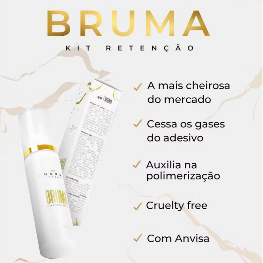 A Bruma para alongamento de cílios da Cherry Lash é desenvolvida com tecnologia exclusiva e inovadora para aumentar a retenção da cola utilizada no procedimento, ou seja, a durabilidade da extensão. Conta ainda com aroma suave o que torna o uso mais agradável.